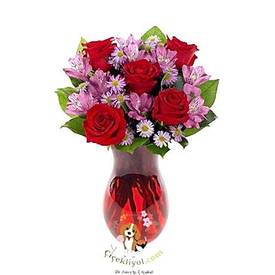Bu vazo Çiçeklerinde Mevsim Şartlarına Göre 1. Sınıf İthal Ve Yerli Ürünler kullanılmaktadır. Çiçeğin yüksekliği yaklaşık 25-35 cm arasındadır.